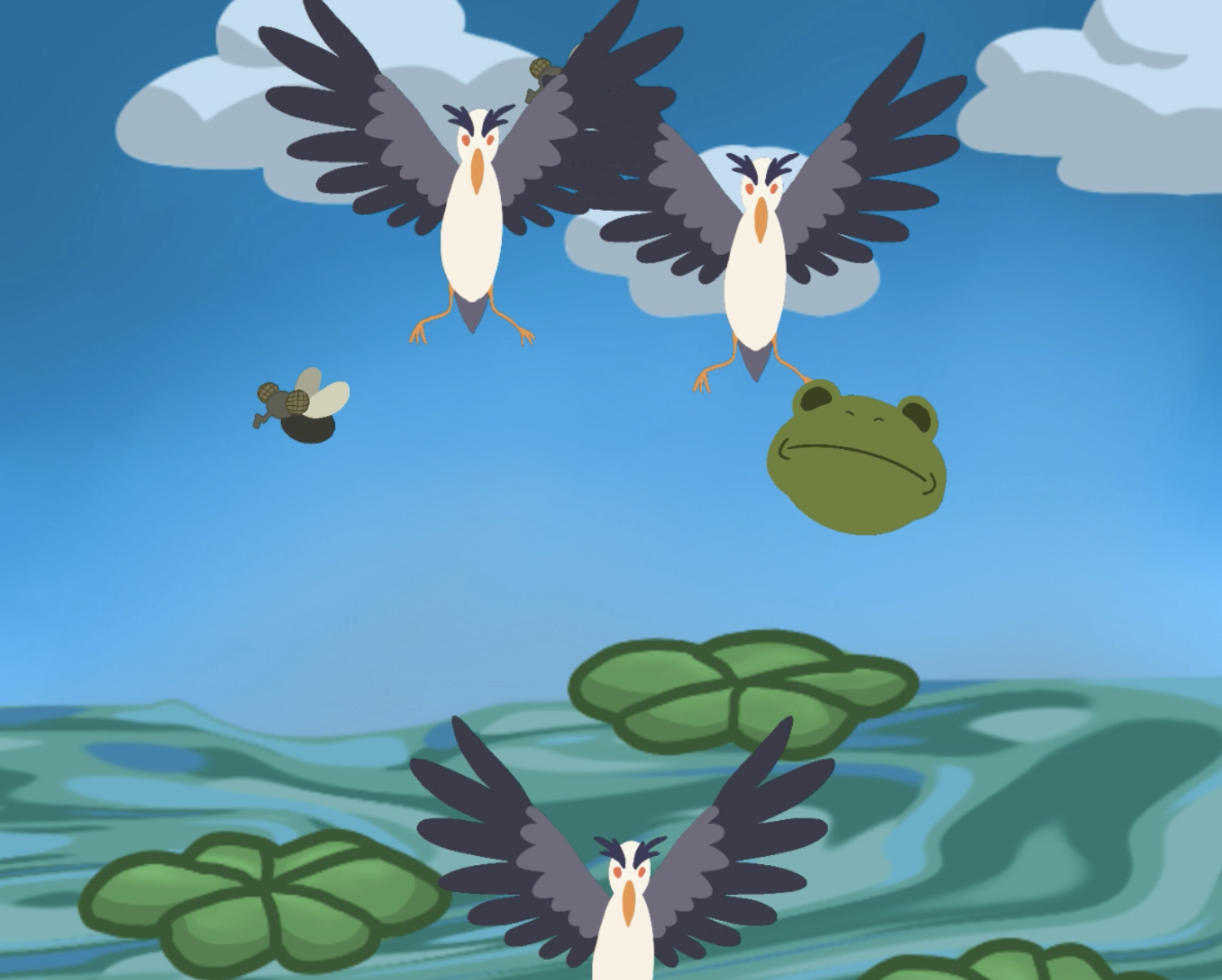 This is a project from my CTK 302 class where I used JavaScript to create a minigame. The idea is that the player is a frog with the objective of “eating” flies and avoiding the birds. I focused on generating the different stage screens, hit boxes, and enemy/objective capture numbers. The assets used were all